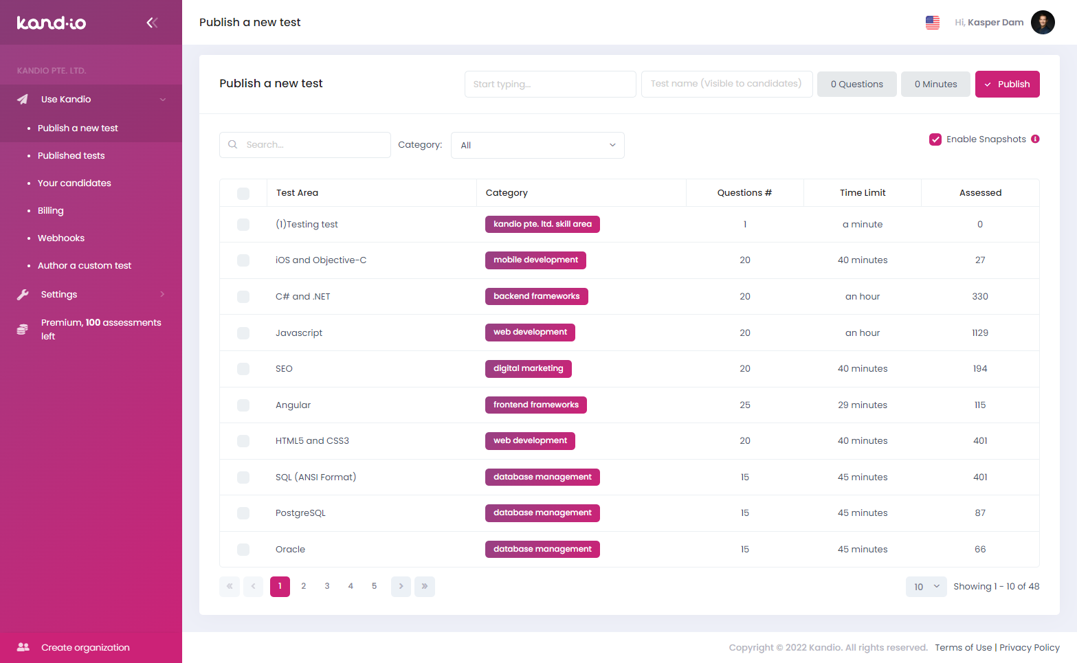 Nuestros expertos llevan décadas liderando en sus áreas respectivas. Con Kandio podrás evaluar a tus candidatos usando sus conocimientos específicos, patentados y con las mejores prácticas para contratar a los mejores.